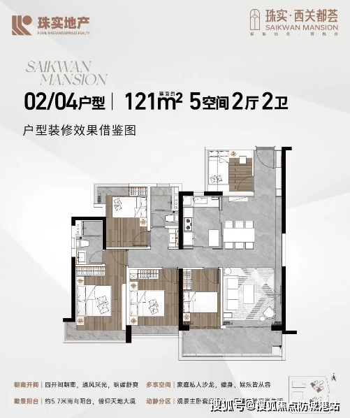 建面约一百四十二平方米的五房两厅三卫则面向高端改善家庭,采用了大宅结构,满脚多代同堂的栖身需求。空间宽阔大气,功能分区完美,客堂宽敞敞亮,餐厅气派不凡。部门房源还能享遭到珠江的绚丽视野,提拔栖身质感。三个卫生间的设想,完全处理了早高峰抢茅厕的烦末路,让家庭的糊口愈加从容有序。无论是父母同住,仍是请保姆照应孩子,这个户型都能供给充脚的空间和便当的前提。
